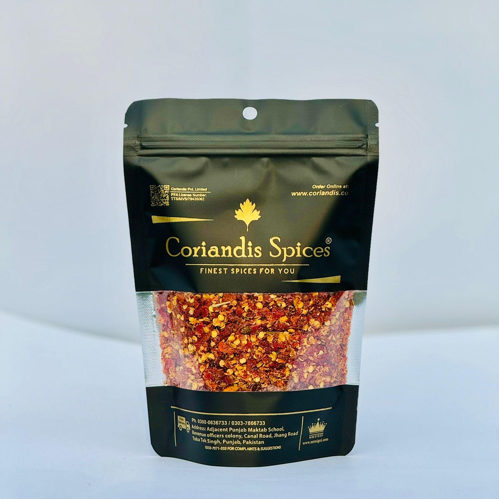 Introducing Coriandis Crushed Red Chilli, also known as "Surkh Dandar Mirch" in Urdu, a fiery and flavorful spice that adds a kick to your dishes. These crushed red chillies are made from high-quality dried red peppers, carefully processed to preserve their vibrant color and intense heat.